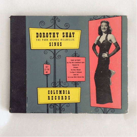 When I was a child, no older than seven years old, my parents returned from one of these conventions with an album of 78-rpm recordings, called Dorothy Shay, Park Avenue Hillbilly. I loved Dorothy Shay’s voice and the songs she sang even though I had no idea what they were about. (My parents record collection also included 78 rpm albums of the Broadway show “Oklahoma” which they had seen together in New York before my father was shipped to New Guinea in World War Two. These albums, along with Bing Crosby’s Christmas Album and a Fats Waller album that included Honeysuckle Rose, Ain’t Misbehavin’, and Your Feet’s Too Big were treasures in our home. My sisters and I were taught to handle these 78-rpm discs with the same care we’d handle fine china.)